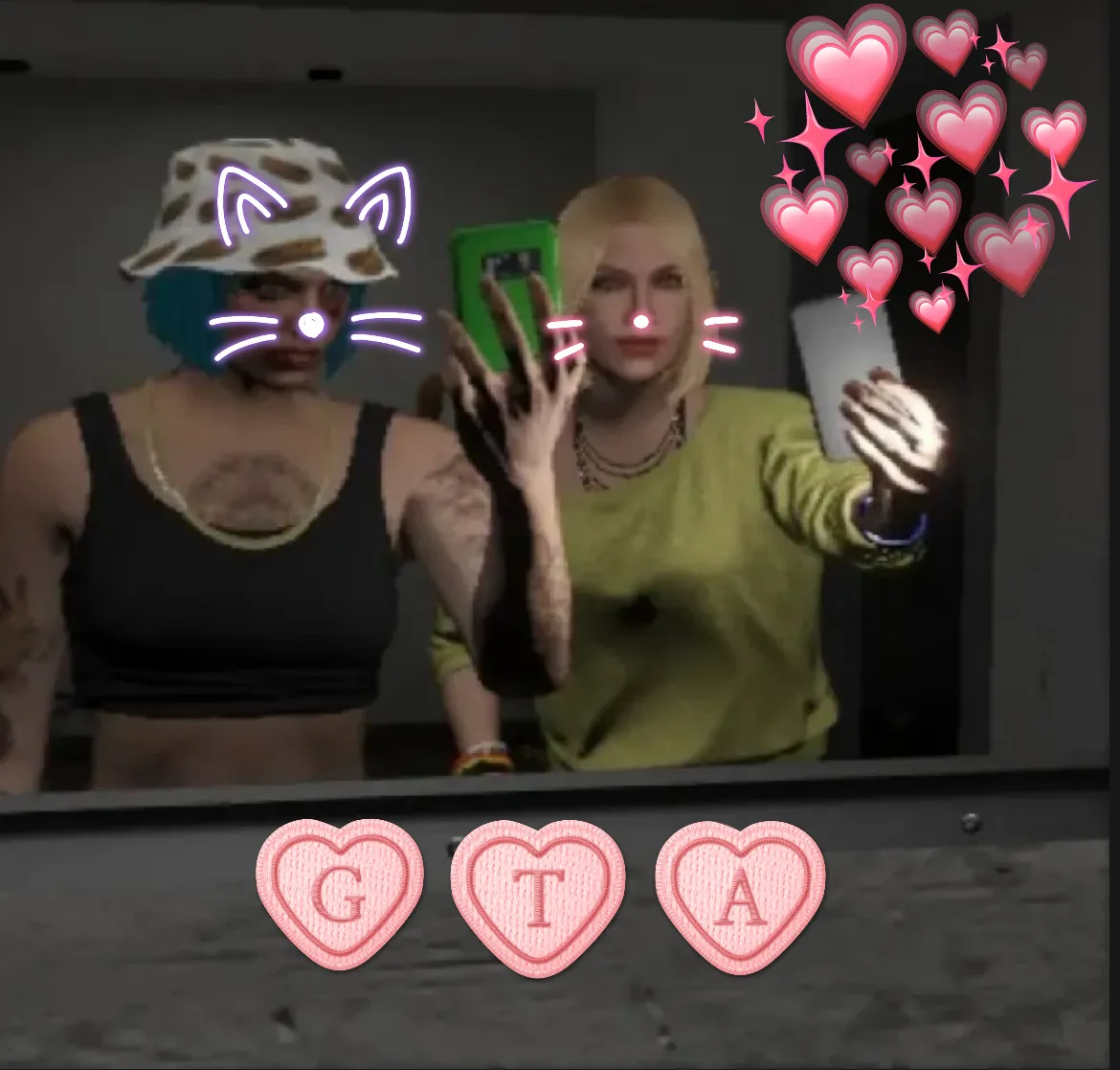In my daily life in Los Santos, I started taking pictures with my phone camera when I was caught up in an enjoyable or strange incident. Is my holding a cell phone camera in the game screen acting in line with my body that exists outside the screen? I'm not taking a screenshot, but I'm becoming a character in the game and holding a phone camera.